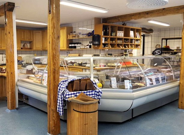 Nu började det kurra i våra magar och lite mat vore inte fel. Vi åkte på smala vägar till Björks Fisk vid Ringsjön och där serverades varmrökt lax med dillsås och potatis som smakade väldigt gott. För de som önskade fanns tillfälle till inköp av delikatesser.