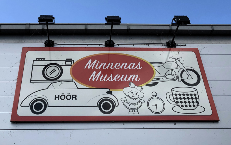 Minnenas Museum väntade på eftermiddagen. Guiden Bosse berättade om samlingen. Den är enorm. Här finns allt mellan himmel och jord. Bilar, motorcyklar och mopeder. Några kunde minnas tonårsdrömmarna på mopeden. Hushållsmaskiner, dockor, skrivmaskiner, kameror, telefoner – ja här fanns alt.