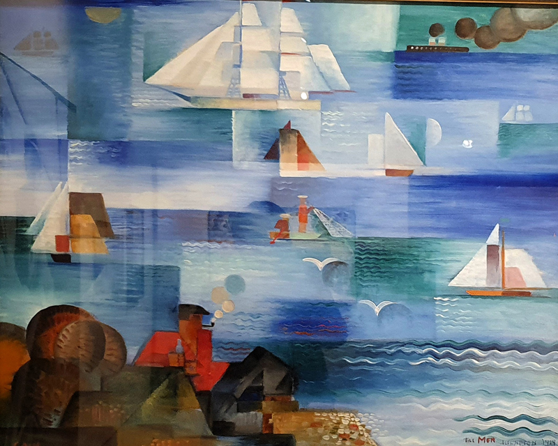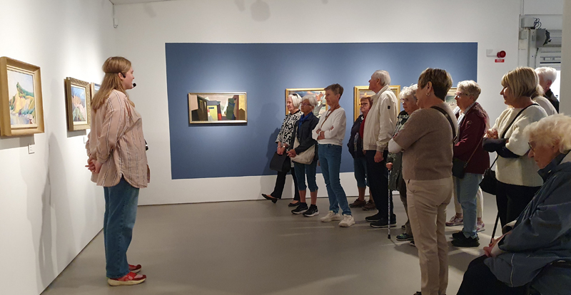 Mätta och belåtna fortsatte vi till Mjellby Konstmuseum där 2 förtjusande och kunniga guider tog hand om oss och introducerade oss till Halmstadgruppen och deras surrealistiska konst. Utställningen avslutades med en nutida videoinstallation