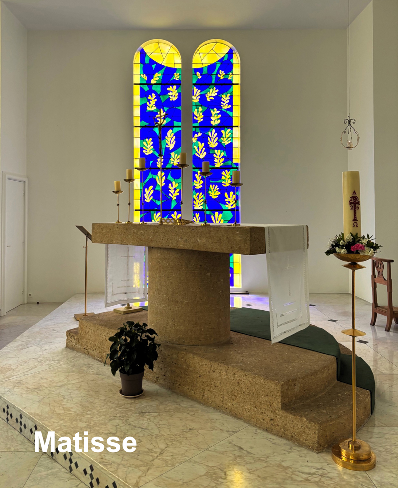 Dag 2: Nu fick vi vår ordinarie chaufför för resan. Han hette Frederique och blev otroligt populär. Gjorde allt för att underlätta för oss. Vi besökte Auguste Renoirs ateljé på kullarna i Cagnes sur Mer. Om eftermiddagen besökte vi Chapelle du Rosaire i Vence ritat och byggt av Henri Matisse som tack till dominikanernunnorna