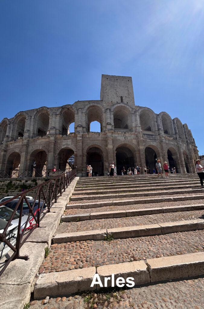 Dag 6: Det mångbesjungna Camargue och Stes Maries de la Mère besökte vi och kunde se de speciella hästarna och sotsvarta tjurarna. En och annan fågel kunde vi också sikta. Vi botaniserade bland butikerna för inköp av för trakten typiska delikatesser. Extra bonustur med genuin vinprovning hade vi fixat förutom den reserverade vinprovningen. Om sena eftermiddagen gjorde vi en liten rundtur till fots i Arles och kunde se romerska lämningar och van Goghs berömda Nattcafé.