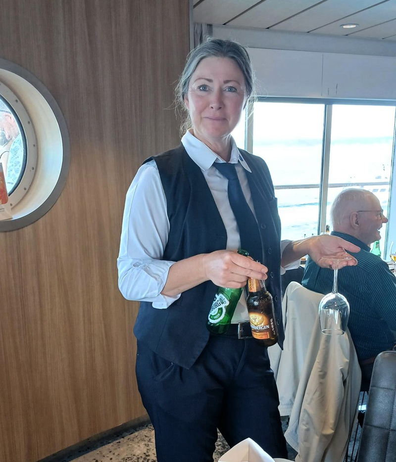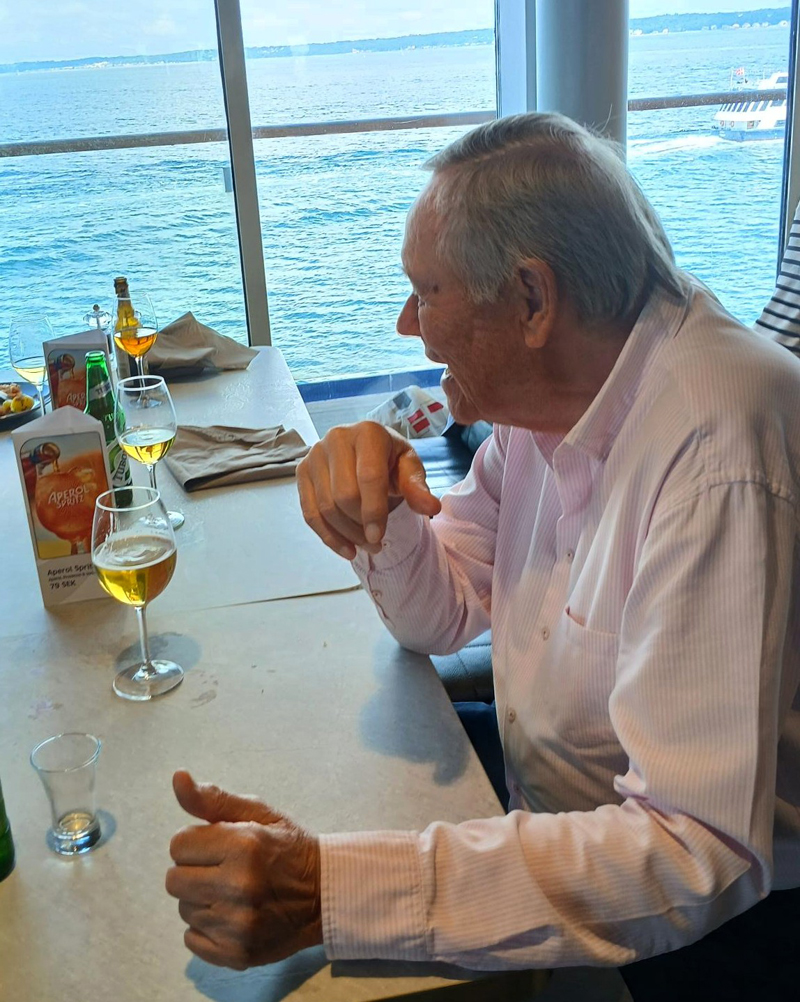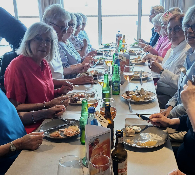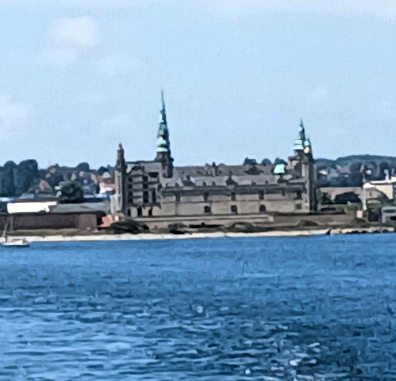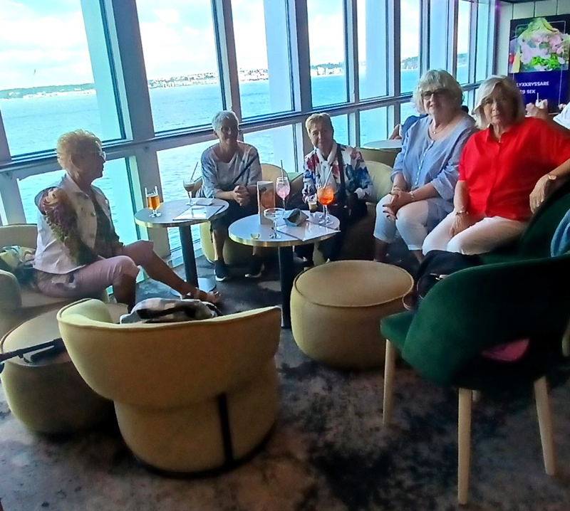 En solig dag i juli turade vi mellan Helsingborg och Helsingör. Vi träffades på knutpunkten i Helsingborg och gick ombord på färjan Aurora. I restaurang Opus Wine and Dine spiste vi en dejlig ”frokost” (lunch) och blev väl omhändertagna av servitrisen som tog upp beställning på drycker. När man turar får man sitta i matsalen 4 turer vilket är ca 2 timmar så man har gott om tid att njuta av maten. Det gick bra att stanna längre på färjan, vilket några gjorde men då får man sitta i baren eller på soldäcket. Några gick av färjan i Helsingör men att tura är endast en enkelbiljett så de som stannade i Helsingör behövde köpa ny biljett för hemresan. Det finns också möjlighet till diverse inköp men spritvaror men köpes kun på den danska sidan. Resan över sundet tar 20 minuter så efter 10 minuter passerade vi gränsen och klockan klämtade att spritförsäljning upphörde/startade beroende på vilken riktning vi åkte. Hemresa var individuell så vi åkte tillbaka vid olika tider.