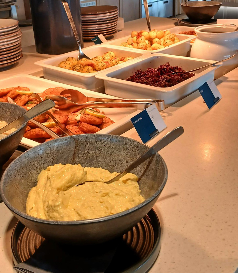 Vi serverades underbart goda middagar båda kvällarna på hotellet! Utsikten från matsalen var härlig vid hamnen.