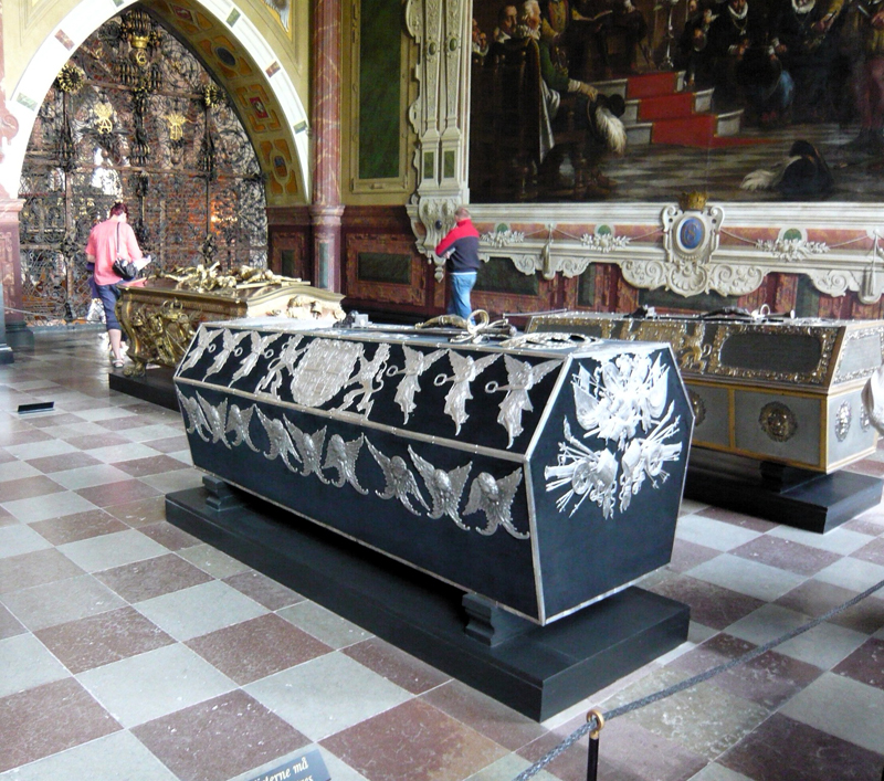 Christian IV:s gravkapell är stort och mitten står hans svarta kista med silverbeslag. Christian IV är den mest populäre av de danska kungarna och den som satt längst på tronen, nästan 60 år framtill februari 1648. En färgstark regent och stor byggherre. Grundlade bl a Kristianstad som fortfarande bär hans sigill. Trots många nederlag kallas perioden för Danmarks guldålder. Hans valspråk var: Regna firmat pietas (fromhet styrker rikena), men vid hans bortgång sade man istället Riket fattes penge.