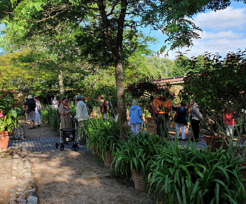 Sorö ligger på vägen hemåt och här hittade Robert, chauffören, och jag på en bonus, som höll på att misslyckas eftersom jag inte riktigt kom ihåg hur vi skulle gå.Sorö akademi är en privat internatskola nära Sorösjön och här ville jag visa något speciellt. Eftersom vi kom in från ”fel” håll tappade jag orienteringen lite. Det gick inte att komma genom valvet intill egendomen med bussen. Men med gemensam hjälp hittade vi rätt till den s.k. Fuchsia-haven. Förutom Afrikas lilja kunde vi beundra fuchsiorna i alla upptänkliga färger som är så höga att det nästan går att promenera under dem.
