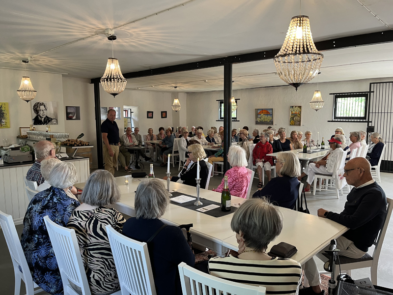 Vi åker mot Löderup och Örums Nygård. En lantgård som förvandlats till gårdshotell och där svinastian har renoverats till restaurang. Vi blir hjärtligt mottagna och serveras sallad och bröd, kyckling med rostad potatis, aioli och ratatouille. Här efter blev det kaffe och en fantastisk god chokladkaka. Under tiden vi drack kaffe berättades familjehistorien om förvandlingen från lantgård till gårdshotell.Vi avslutade besöket med en rundvandring och fick se spaavdelning och hotellrum.